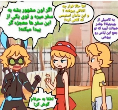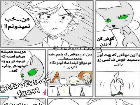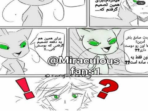 12=لیدی باگ(آدرین):هی من من لیدی باگم،من پاریس رو نجات می دم. کت نوار :کت، لطفا.